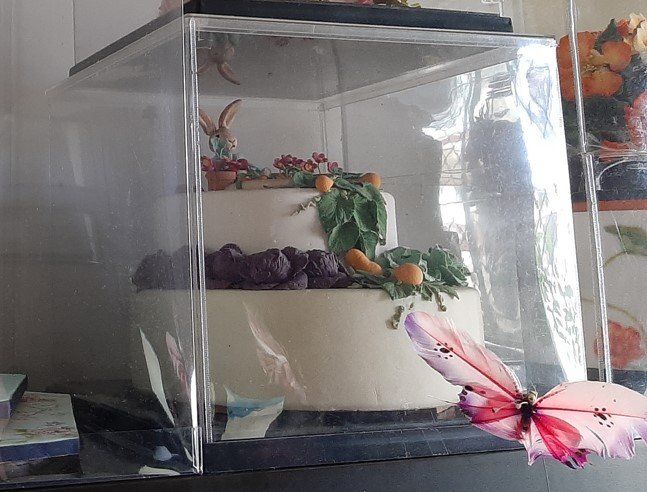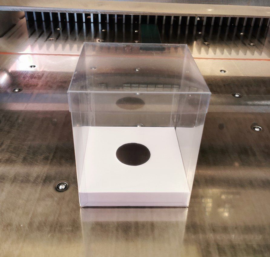 When the height goes up, so does the amount of space required! To keep storage manageable, larger boxes – for a 30cm high cake, for example – can be made as a 3-piece box. Here we make a base and lid as a 25mm high tray, and then the central body as a ‘sleeve’ that can be squashed into a diamond shape for storage.